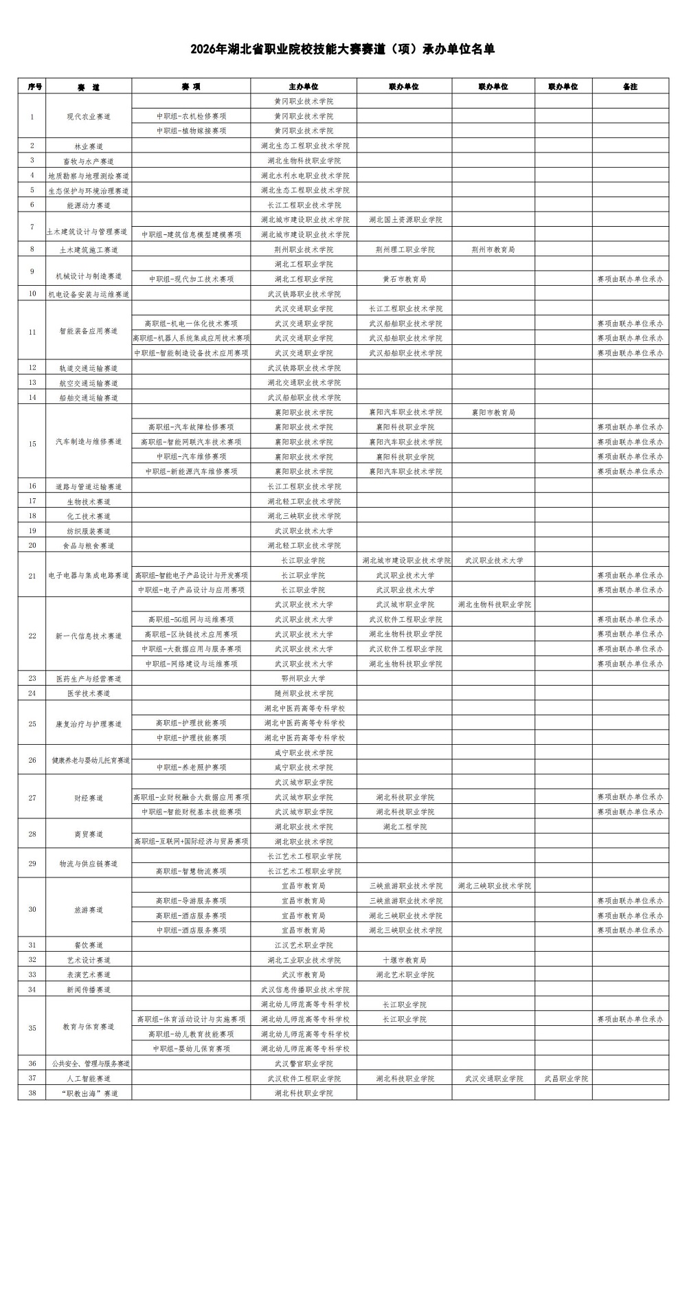 2026年湖北省职业院校技能大赛赛道(项)承办单位名单