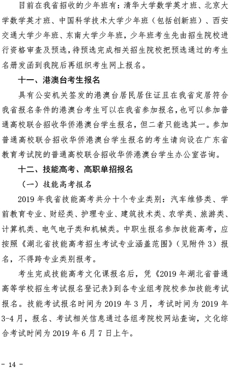 上一篇: 湖北省2019年普通高等学校招生统一考试报名须知