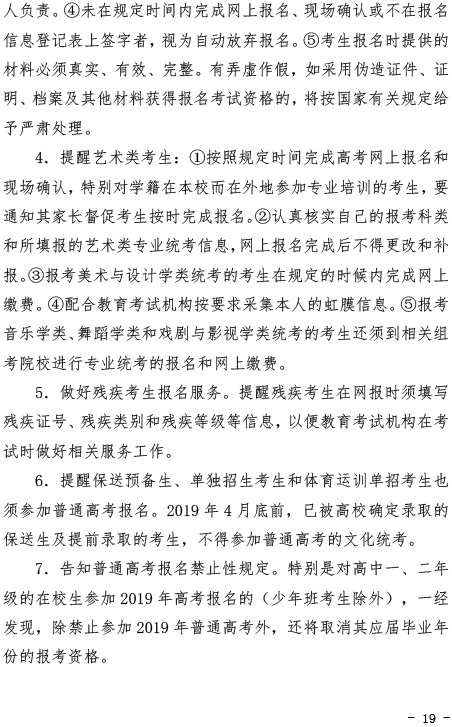 关于做好2019年湖北省普通高考报名工作的通知