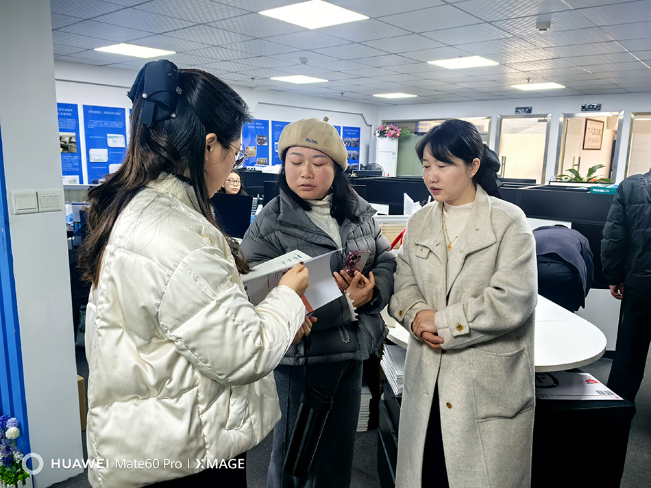 在曾院长的引领下,来访的教育同仁们首先参观了湖北准易教育研究院的办公区域。这里布局科学合理,浓厚的学术气息扑面而来,工作人员积极向上的工作态度令人印象深刻。曾院长详细且全面地介绍了研究院的业务范畴与服务项目,涵盖湖北技能高考大数据平台、湖北技能高考志愿填报平台、准易云课平台等。这些平台旨在为中职教育提供全方位、个性化的解决方案,助力中职教育高质量发展。准易团队严谨的科研精神、创新的思维方式以及高效的工作流程,赢得了来访领导们的高度赞誉。孙秀琴书记不禁感慨:“看到准易教育研究院如此专业且充满活力的团队,我们对中职教育的未来满怀信心。”