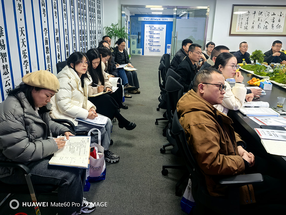 随后,众人移步至会议室,展开了一场深入且富有成效的交流会议。会上,曾华院长借助准易自主研发的大数据平台,为大家带来了一场精彩绝伦的讲解。他以通俗易懂的方式,深入剖析了如何运用数据大模型提升教学效率,减轻一线教师的备课压力。通过大数据分析,能够精准掌握学生的学习状况,包括知识掌握程度、学习进度、学习习惯等多方面信息,进而为教师提供个性化的教学建议。同时,借助调考机制,可以全面评估教师的教学成果,深入了解各学科的教育教学效果,精准定位学生的知识短板,并进行针对性的查漏补缺。针对本学期的期末调考,曾院长特别提到,准易研发的语文作文审阅系统已正式上线,极大地提升了阅卷效率。曾院长的讲解逻辑严谨、案例丰富,让与会领导们对大数据在教育领域的广泛应用有了更为深刻的认识。武汉市江夏职业技术学校副校长张路表示,准易教育研究院在教育现代化、信息化方面有着深刻的理解与实践,尤其是大数据应用的前瞻性教育模式,为中职教育的改革与发展注入了新的活力,为各校提供了可借鉴的宝贵经验。