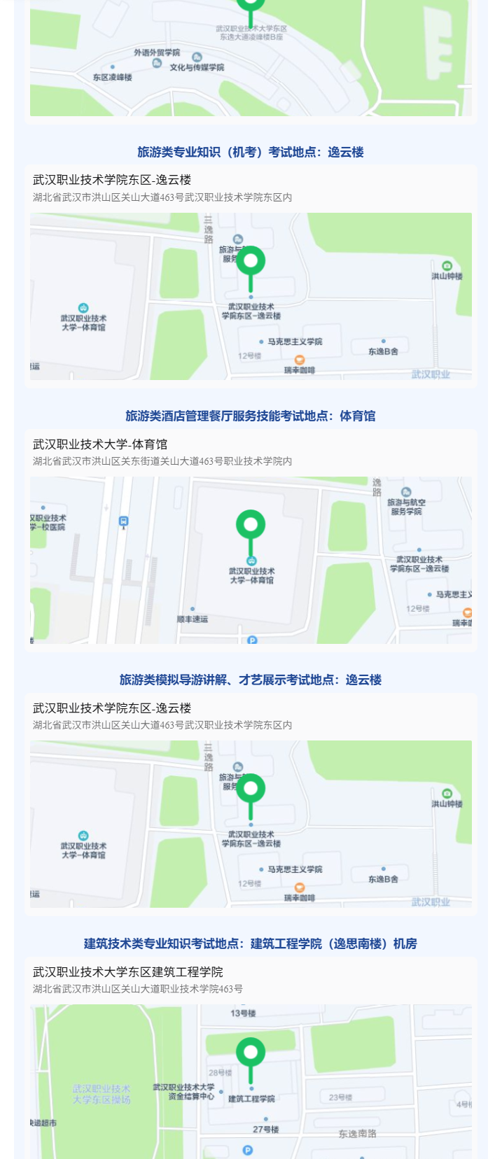 1.单独赴考的考生考试期间考生凭本人有效身份证、准考证进入校园。计算机类考生建议从光谷校区东2门(光谷大道)进入,旅游类、建筑技术类考生建议从光谷校区东1门(关山大道)进入。